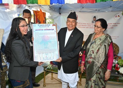 काठमाडौं - मित्रराष्ट्र जर्मनीको भ्रमणमा रहेका राष्ट्रपति रामचन्द्र पौडेलको सम्मानमा जर्मनीको वर्लिनस्थित नेपाली राजदूतावासले आाइतबार विशेष स्वागत समारोह आयोजना गरेको छ। राष्ट्रपति पौडेलको सम्मानमा आयोजित समारोहमा प्रथम महिला सबिता प ...