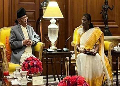 काठमाडौं - प्रधानमन्त्री पुष्पकमल दाहाल ‘प्रचण्ड’ले भारतीय राष्ट्रपति द्रौपदी मुर्मुसँग भेटवार्ता गरेका छन् ।भारतको औपचारिक भ्रमणमा रहेका प्रधानमन्त्री प्रचण्डले नयाँ दिल्लीस्थित राष्ट्रपति भवनमा राष्ट्रपति मुर्मुसँग भेट गरेका हुन्।भेटवार्ताका क्रममा ...