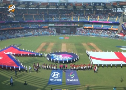 काठमाडौं - आइसिसी पुरुष टि ट्वान्टी विश्वकप क्रिकेट प्रतियोगिताको पहिलो खेलमा नेपालले इङ्ल्यान्डविरुद्ध पहिला बलिङ गर्ने भएको छ। भारतको मुम्बईस्थित वानखडे स्टेडियममा इङ्ल्यान्डका कप्तान ह्यारी ब्रुकले टस जितेर पहिला व्याटिङ रोजेका छन्। नेपालले द ...