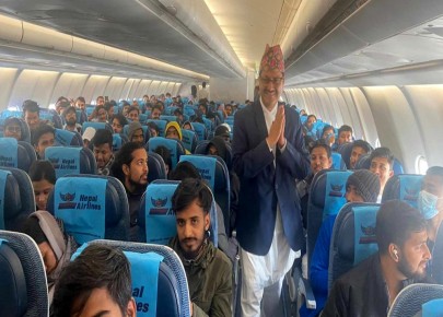 काठमाडाैं-इजरायलमा हमास समूहको आक्रमणपछि स्वदेश फर्कन चाहने नेपाली नागरिकलाई उद्धार गर्न गएको नेपाल एयरलाइन्सको विमान आज राति १ः३० बजे काठमाडौं आइपुग्ने भएको छ । विमान दुई सय ५४ नेपाली नागरिक लिएर इजरायलबाट काठमाडौँका लागि उडिसकेको परराष्ट्र मन्त्राल ...