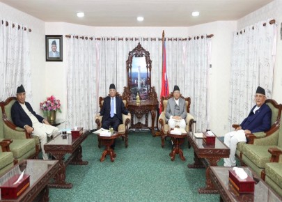 काठमाडौं - तीन दलका शीर्ष नेताहरूको बैठकमा संवैधानिक परिषद बैठक चाँडै बोलाएर प्रधानन्यायाधीश सिफारिस गर्ने सहमति भएको छ ।नेकपा एमालेका अध्यक्ष केपी शर्मा ओलीको निवासमा आज बिहान बसेको बैठकमा प्रधानन्याधीश सिफारिस गर्ने सहमति भएको कांग्रेसका प्रमुख सचे ...