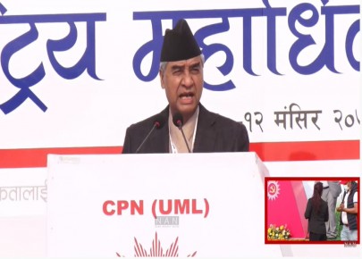रिमोट थिचेर झण्डोत्तलन गर्दै ओलीद्वारा दशौँ महाधिवेशन उद्घाटन