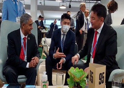 काठमाडौं - प्रधानमन्त्री शेरबहादुर देउवा र मंगोलियाका राष्ट्रपति उखना खुरेलसुखबीच साइडलाइन वार्ता भएको छ ।स्कटल्याण्डको ग्लास्गोस्थित जलवायुसम्बन्धी विश्व सम्मेलन (कोप-२६) मा सहभागी प्रधानमन्त्री देउवाले मंगलबार मंगोलियाका राष्ट्रपतिसँग भेट गरेका हुन ...