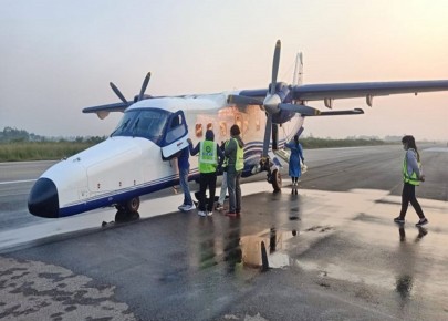 काठमाडौं,नेपालगञ्ज - हुम्लाको लागि उडान भर्दै गरेको सीता एयरको जहाज नेपालगञ्ज विमानस्थलको धावनमार्गमा बँदेलसँग ठोक्किएर दुर्घटनामा परेको छ । आज बिहान ७ बजे हुम्लाको सिमिकोट उड्ने क्रममा सिता एयरको कल साइनको जहाज धावनमार्गमा बँदेलसँग ठोक्किएको हो ।उड् ...