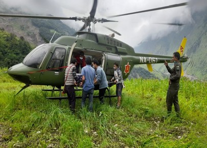 दुई दिनदेखि व्यथा लागेकी गर्भवती महिलाको हेलिकप्टरबाट उद्धार