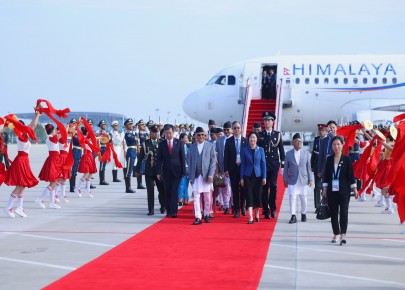 प्रधानमन्त्री ओली चीनमा, थियानजिन विमानस्थलमा भव्य स्वागत