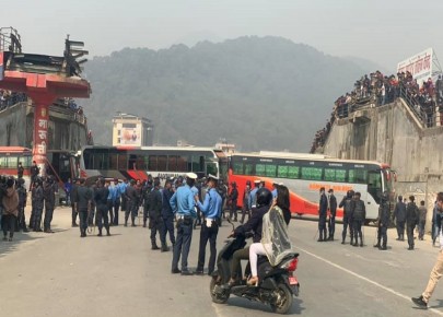 ट्राफिकले चिट काटेको भन्दै गोंगबुको सडकमै चालकहरुले बस तेर्साए