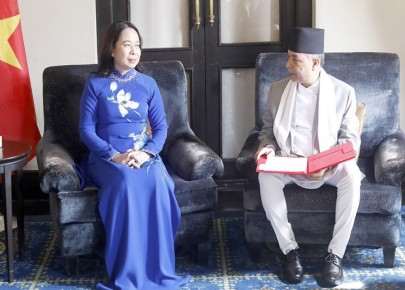 काठमाडौं- नेपाल भ्रमणमा रहेकी भियतनामकी उपराष्ट्रपति भो थि आन सुआन र प्रधानमन्त्री केपी शर्मा ओलीबीच भेटवार्ता भएको छ। आइतबार सिंहदरबारमा उनीहरुबीच भेटवार्ता भएको हो। सो भेटमा दुई देशबीचको आपसी सम्बन्ध र सहकार्यका विविध विषयमा छलफल हुने परराष्ट्र मन् ...