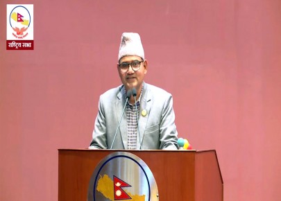 राष्ट्रिय सभाको बैठकलाई प्रधानमन्त्री ओली सम्बोधन गर्दै