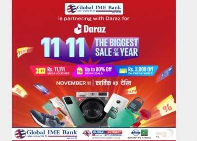 काठमाडौं - ग्लोबल आइएमई बैंक लिमिटेडका ग्राहकहरुले लोकप्रिय अनलाइन सपिङ्ग प्लेटफर्म दराजले सार्वजनिक गरेको “दराज ११ः११ अफर”मा २० प्रतिशतसम्म छुट पाउने भएका छन् । यस योजनाअन्तर्गत ग्राहकहरुले ग्लोबल आइएमई बैंकको भिषा डेबिट वा क्रेडिट कार्ड प्रयोग गरी ...