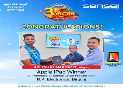 काठमाडौं - जापानमा ईन्जिनियरिङ गरिएको नेपाली इलेक्ट्रोनिक्स ब्राण्ड सेन्साईले नेपालीहरुको चाड दशैं तिहार २०७९ लाई लक्षित गर्दै सार्वजनिक गरिएको ‘सेन्साई ३ को झट्का’ नामक योजना अन्तर्गत सेन्साई ब्राण्डका कुनै पनि सामानको खरिदमा लक्की ड्र मार्फत बम्पर ...