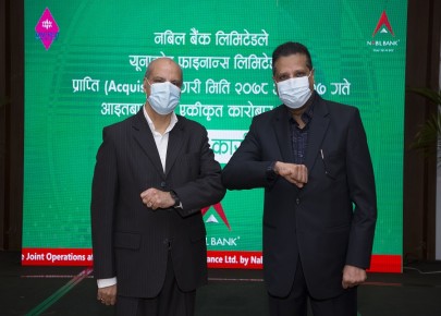 काठमाडौं - नबिल बैंकले युनाइटेड फाइनान्सलाई एक्विजेशन (प्राप्ती) गर्ने प्रक्रिया पूरा भएको छ । प्राप्ती प्रक्रिया पूरा भएर आजदेखि एकीकृत कारोबार सुरु भएको छ ।आज आयोजित एक कार्यक्रममा नबिल बैंक तथा युनाइटेड फाइनान्सका अध्यक्ष उपेन्द्र प्रसाद पौड् ...