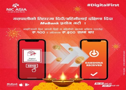 काठमाडौं - एआईसी एशिया बैंकले डिजिटल रकम स्थानान्तरणलाई प्रोत्साहन गर्न भाइटिका २०७७ को उपलक्ष्यमा डिजिटल दक्षिणा योजना ल्याएको छ ।‘सोच बदलौं’ भन्ने नारालाई आत्मसात गर्दै आइरहेको यस बैंकले भाईटिकामा ग्राहकहरूले आफ्ना दिदीबहिनीलाई दिने दक्षिणा यस बैंक ...