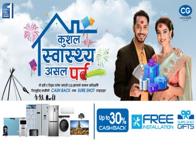 काठमाडौ - नेपालको सबैभन्दा ठूलो ईलेक्ट्रोनिक्स ब्राण्ड सिजीले दशैं तिहार पर्वलाई लक्षित गरि थप अर्को उपहार नै उपहारको योजना ल्याएको छ ।सिजीले यसअघि ल्याएको उपहार योजनाहरुमा उपभोक्ताहरुले सिजीको आधिकारीक वेभसाईट www.cginspiringlife.com /category/festi ...