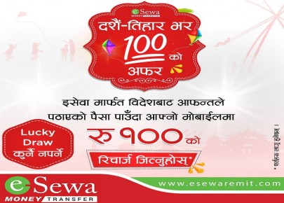 इसेवा मनि ट्रान्स्फरले ल्यायो ‘दशैँ तिहार भर सयको अफर’