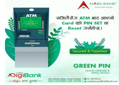 नबिल बैंकमा ग्रिन पिन सेवा सुरु