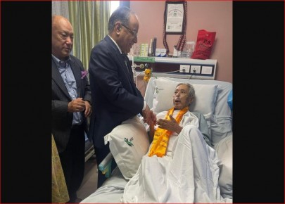 विश्व र्कीतिमानी तामाङको स्वास्थ्यस्थिति बुझ्न अध्यक्ष प्रचण्ड अस्पतालमा