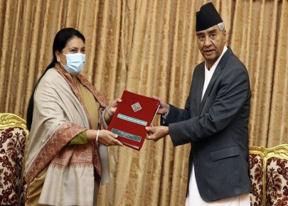 प्रधानमन्त्री देउवा र प्रधानसेनापति शर्माद्वारा राष्ट्रपति भण्डारीसमक्ष प्रतिवेदन पेश
