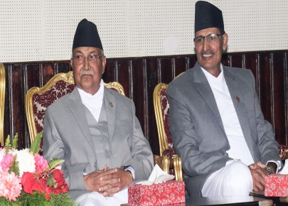 काठमाडौं - प्रधानमन्त्री केपी शर्मा ओली र प्रतिनिधिसभाका सभामुख अग्निप्रसाद सापकोटाबीच भेटवार्ता भएको छ ।बुधबार बिहान प्रधानमन्त्रीको निवास बालुवाटारमा भेटवार्ता भएको हो । भेटमा आगामी बजेटबारे छलफल भएको स्रोतले बताएको छ । बजेट अधिवेशन बोलाउने, विनियो ...