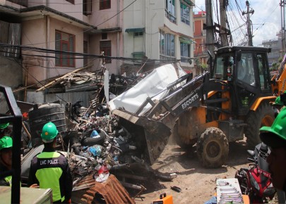 कवाडी संकलन केन्द्र हटाउन महानगर प्रहरीले डोजर चलायो