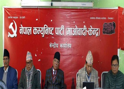 काठमाडौं- नेकपा माओवादी केन्द्रले सत्ता साझेदार दल नेपाली कांग्रेस र नेकपा एमालेले संविधान संशोधनलाई सत्ता प्राप्तिको बहाना बनाएको आरोप लगाएको छ ।बिहीबार केन्द्रीय कार्यालय पेरिसडाँडामा बसेको बैठकबारे जानकारी दिन आयोजित पत्रकार सम्मेलनमा प्रवक्ता अग् ...