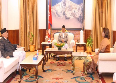 काठमाडौं - राष्ट्रपति रामचन्द्र पौडेल र प्रधानमन्त्री केपी शर्मा ओलीबीच भेटवार्ता भएको छ । उनीहरुबीच राष्ट्रपति निवासमा भेटवार्ता भएको हो ।भेटमा आसन्न चीन भ्रमणबारे प्रधानमन्त्री ओलीले छलफल गरेको बताइएको छ । प्रधानमन्त्री ओली परराष्ट्रमन्त्री आरजु रा ...