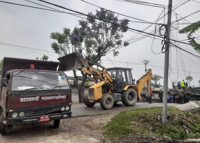 काठमाडौं - काठमाडौं महानगरपालिकाले सिहंदरबारअगाडि रहेका अवैध संरचना र अव्यवस्थित रूपमा फालिएका फोहरमैला हटाएको छ । राष्ट्रिय वाणिज्य बैंकदेखि नेपाल टेलिकम केन्द्रीय कार्यालय वरिपरिका अवैध संरचना तथा अव्यवस्थित फोहरमैला हटाएको हो । महानगर प्रहरी प्रमु ...