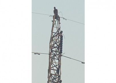 सडकको काम रोक्न माग गर्दै पोलमा चढे युवक