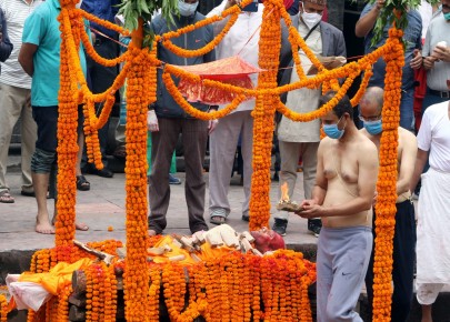 काठमाडौं - दिवङ्गत राष्ट्रकवि माधवप्रसाद घिमिरेको आज पशुपति आर्यघाटमा राष्ट्रिय सम्मानसहित अन्त्येष्टि गरिएको छ । उनको पार्थिव शरीरमा छोराहरु इन्दिवर र राजीव घिमिरेले मुखाग्नि अर्पण गरेका थिए । यसअघि उनको निवास लैनचौर, अलकापुरी पुगी दिवङ्गत घिमिरेप्र ...