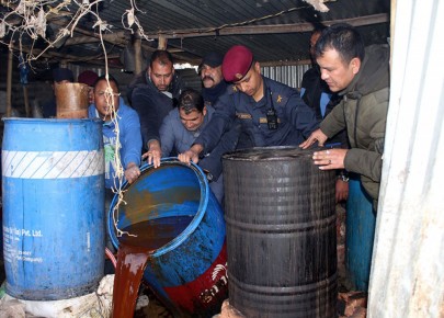 काडमाडौं - महानगरीय प्रहरी प्रभाग बूढानीलकण्ठले अवैधरूपमा सञ्चालन गरिएको मदिरा भट्टीमा छापा मारी २० हजार लिटर मदिरा नष्ट गरेको छ । बूढानीलकण्ठ नगरपालिका–२ कामीटारस्थित २० वटा भट्टीमा प्रहरीले सोमबार साँझ छापा मारेको हो ।उक्त भट्टीबाट पाँच हजार लिटर त ...