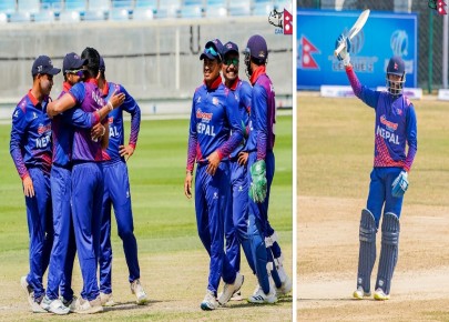 काठमाडौं-नेपालले आइसिसी विश्वकप लिग-२ त्रिकोणात्मक ओडिआई सिरिजमा घरेलु टोली युएईमाथि रोमाञ्चक जित निकालेको छ ।सोमबार दुबई इन्टरनेशनल क्रिकेट स्टेडियममा भएको खेलमा नेपालले युएईलाई ४२ रनले पराजित गरेको हो । नेपालले दिएको २३० रनको लक्ष्य पछ्याएको युएईले ...