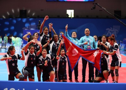 काठमाडौं - नेपाली महिला कबड्डीले काँस्य पदक सुनिश्चित गरेको छ । चीनमा जारी एसियाली खेलकुद (यसियाड)मा नेपाली महिला टोलीले कम्तिमा एक पदक सुनिश्चित गरेको हो । आफ्नो समूहको अन्तिम खेलमा आज इरानले बंगलादेशलाई ५४–१६ ले पराजित गरेपछि नेपालको एक ...