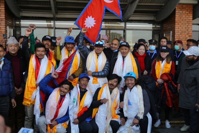 उनीहरुले माघ ३ गते माउन्ट के टू को सफल आरोहण गरेका थिए । संस्कृति, पर्यटन तथा नागरिक उड्ययन मन्त्रालयका सचिव यादव प्रसाद कोइरालाले त्रिभुवन विमास्थलमा आरोहीहरुलाई स्वागत गर्दै आरोहीहरुले नेपालको उच्च शिरलाई पुनः अन्र्तराष्ट्रिय जगतमा राख्न सफल भएको बताए ।