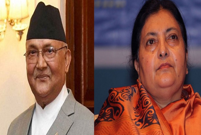 काठमाडौं - राष्ट्रपति विद्यादेवी भण्डारी र प्रधानमन्त्री केपी शर्मा ओलीबीच भेटवार्ता भएको छ । राष्ट्रपति भण्डारीलाई भेट्न प्रधानमन्त्री ओली आइतबार बिहान शीतल निवास पुगेका हुन् ।