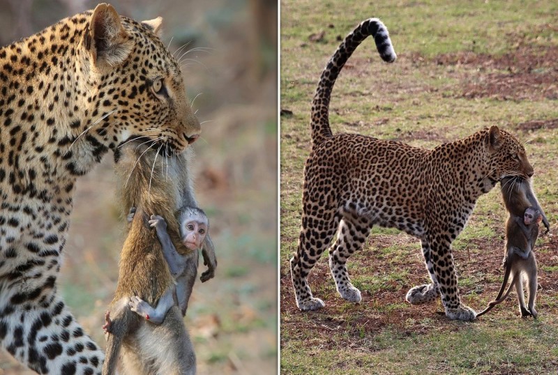 घटनाका ह्दयविदारक तस्बिरहरुमा एक सानो बाँदरको बच्चा आफ्नो मृत आमाको शरिरमा टाँसिएको छ जबकी उसको आमाको निर्जीव शरीर चितुवाको मुखमा झुण्डिएको छ ।