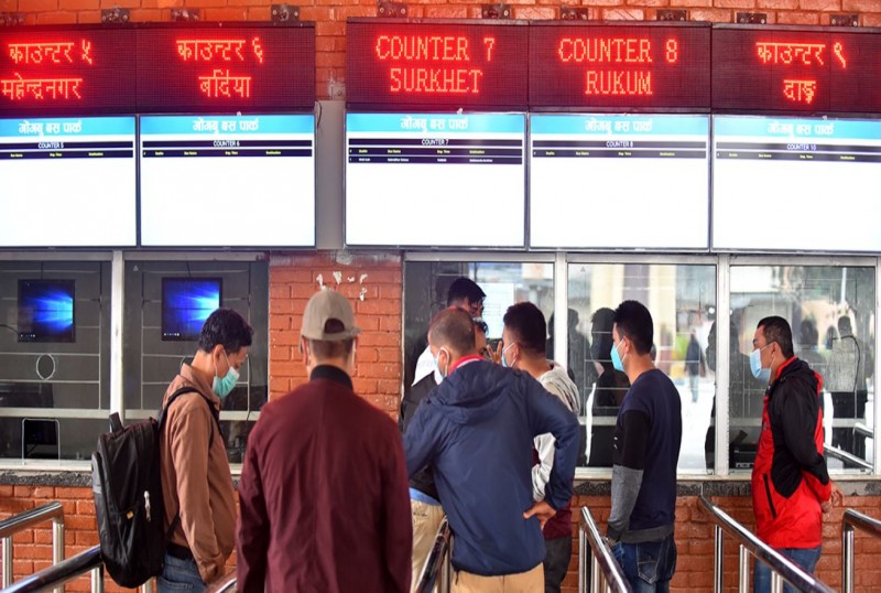 सरकारले यस वर्षको दशैँका लागि घर जानेका लागि अग्रिम टिकट बुकिङ खुला गरेसँगै पश्चिमको धनगढी, टिकापुर, बझाङ, बाजुरा, सल्यान, रुकुम, प्यूठान, रोल्पा तथा पूर्वको सिराहा, सप्तरी, ताप्लेजुङ, इलाम, झापा, उदयपुरलगायतका ठाउँमा जाने यात्रुको बसपार्कमा लाइन देखिन्थ्यो ।