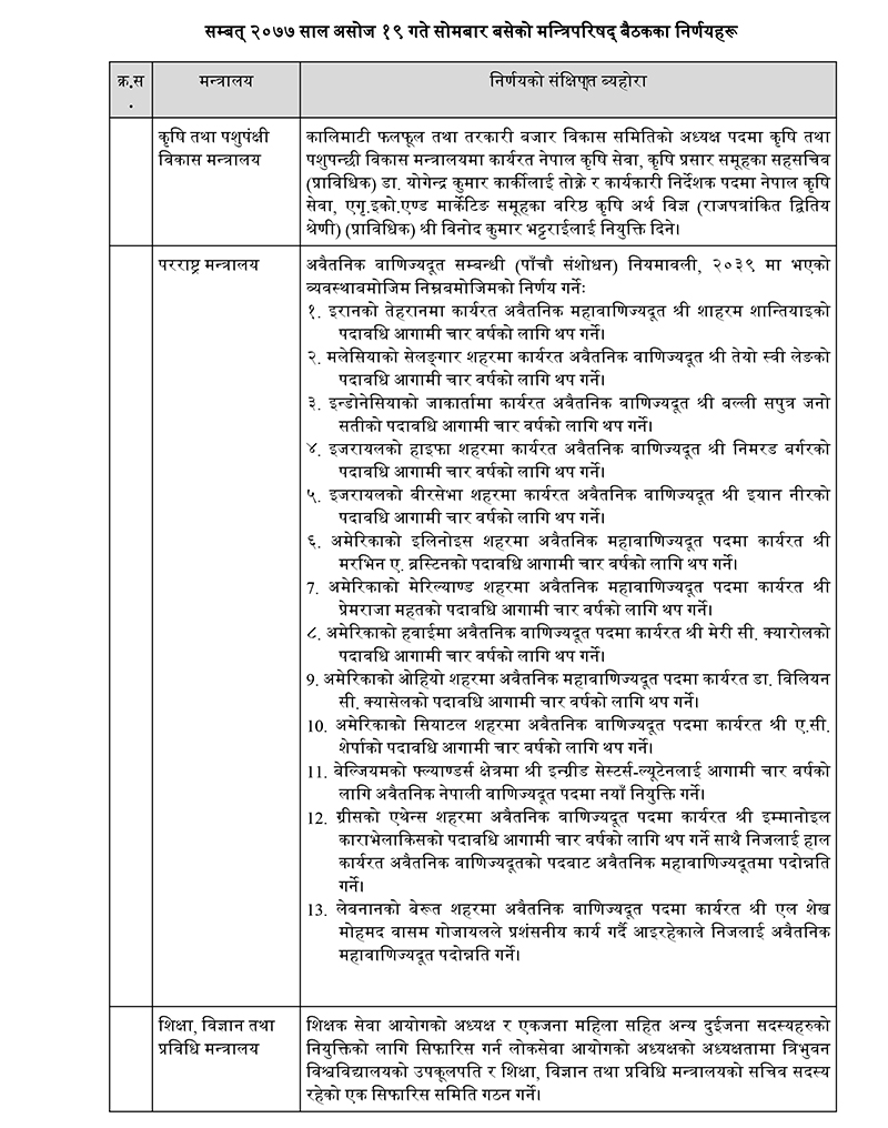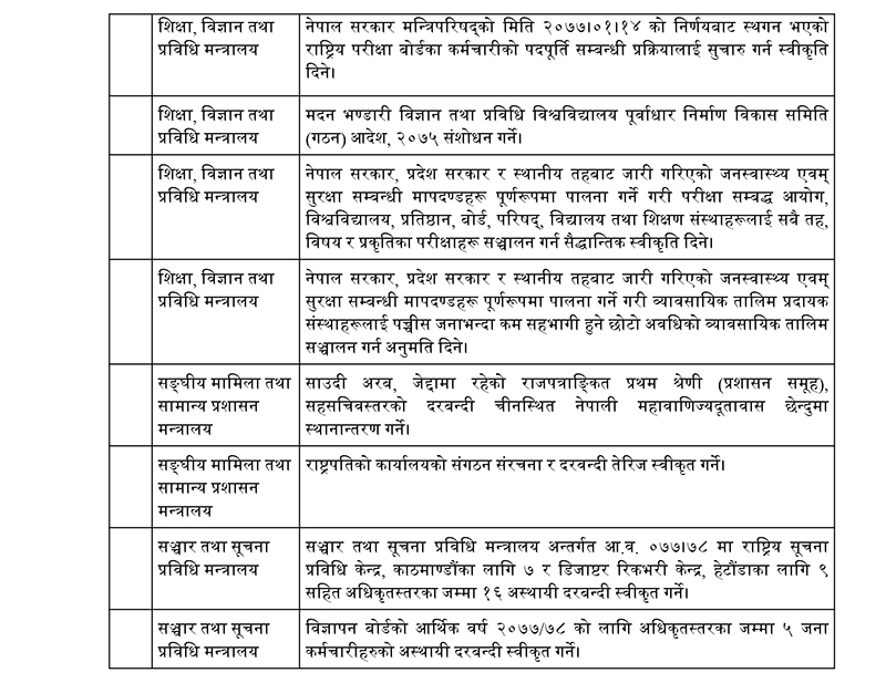 मन्त्रिपरिषद् बैठकका निर्णयहरु-
