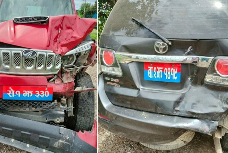 काठमाडौं - सुदूरपश्चिम प्रदेशका दुई जना मन्त्री सवार गाडी एक आपसमा ठोक्किएका छन् ।