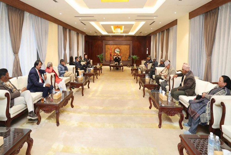 राष्ट्रिय सभामा सिट बाँडफाँट गर्न सत्ता गठबन्धनको बैठक बालुवाटारमा जारी