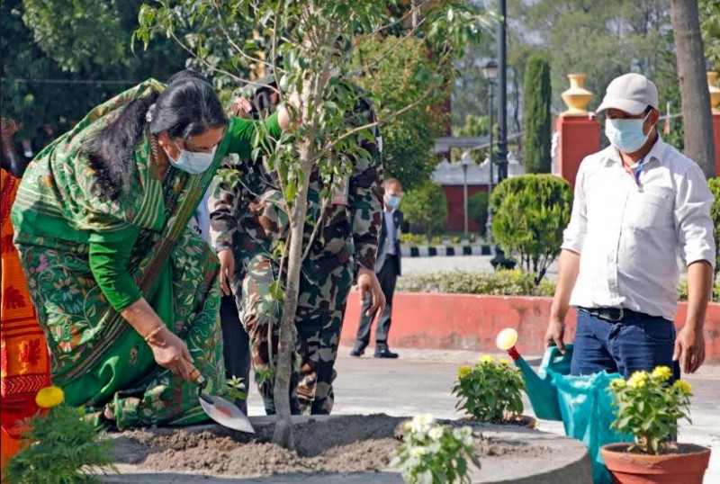 विश्व वातावरण दिवसका अवसरमा राष्ट्रपति भण्डारीद्धारा बृक्षारोपण