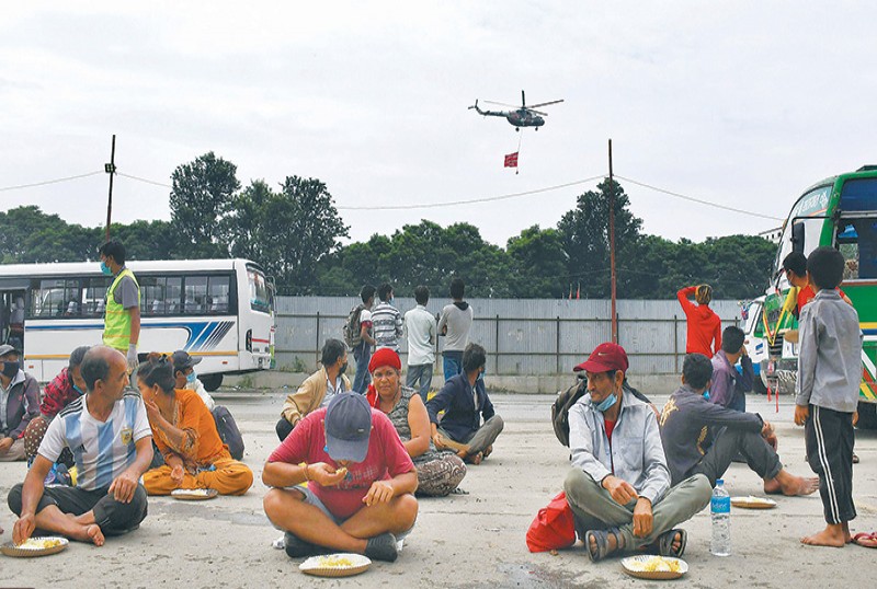 उसो त प्रधानमन्त्री ओलीले भोजनभन्दा सुरक्षा प्राथमिकतामा पर्छ भनेर शुक्रबार मात्रै भनेका छन् । तर एक पेट खानका लागि आफ्नै नागरिकले गरेको संघर्षलाई नजरअन्दाज गर्दै साँघुरो घेरामा मनाइएको संविधान दिवसले राज्यको प्राथमिकलाई झन्झन् संकुचित गराइरहेको प्रतीत हुन्थ्यो । भलै प्रधानमन्त्रीले भनेका छन्, ‘ऋतु फेरिन्छन् । जतिसुकै पीडा वा छटपटी रहे पनि मानिसहरू जीवनलाई निरन्तरता दिन्छन् ।’ तर उनले यो भनेनन्, ‘जीवनको मायाले नागरिक दसौं किलोमिटर हिँडेर खुलामञ्च आइपुग्छन्, सार्वजनिक शौचालयका अघिल्तिर टुसुक्क बसेर मनकारीहरूलाई पर्खिन्छन्, एक छाक खान्छन् र फर्किन्छन् ।’
