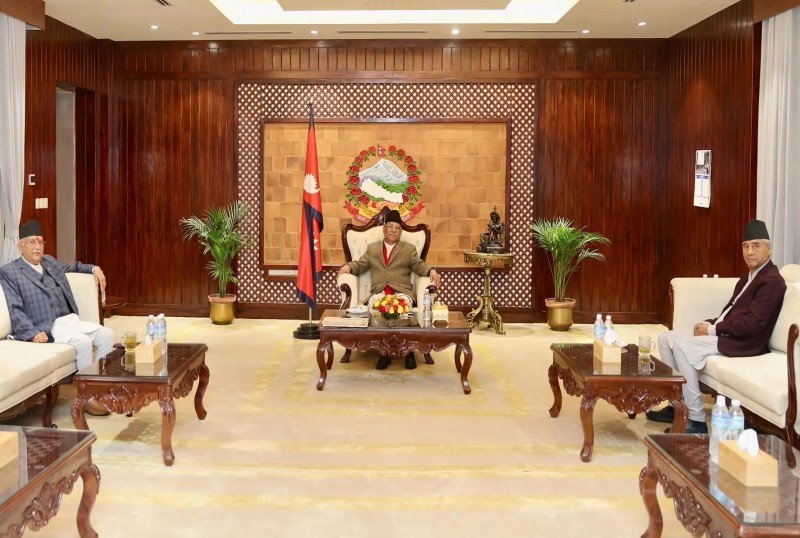 माओवादी अध्यक्ष समेत रहेका प्रधानमन्त्री पुष्पकमल दाहाल, कांग्रेस सभापति शेरबहादुर देउवा र नेकपा एमालेका अध्यक्ष केपी शर्मा ओलीबीच मंगलबार साँझ बालुवाटार छलफल भएको हो ।