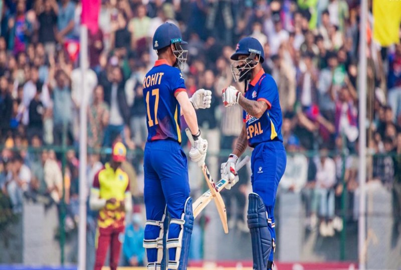 काठमाडौं- नेपाल वेस्ट इन्डिज ‘ए’विरुद्ध शानदार जित निकालेको छ ।शनिबार त्रिवि क्रिकेट मैदानमा ५ खेलको सिरिजको पहिलो खेलमा नेपालले ४ विकेटको जित निकालेको हो ।नेपालका कप्तान रोहितकुमार पौडेलको शतकमा वेस्ट इन्डिज ‘ए’विरुद्ध नेपालले शानदार जित निकालेको हो ।