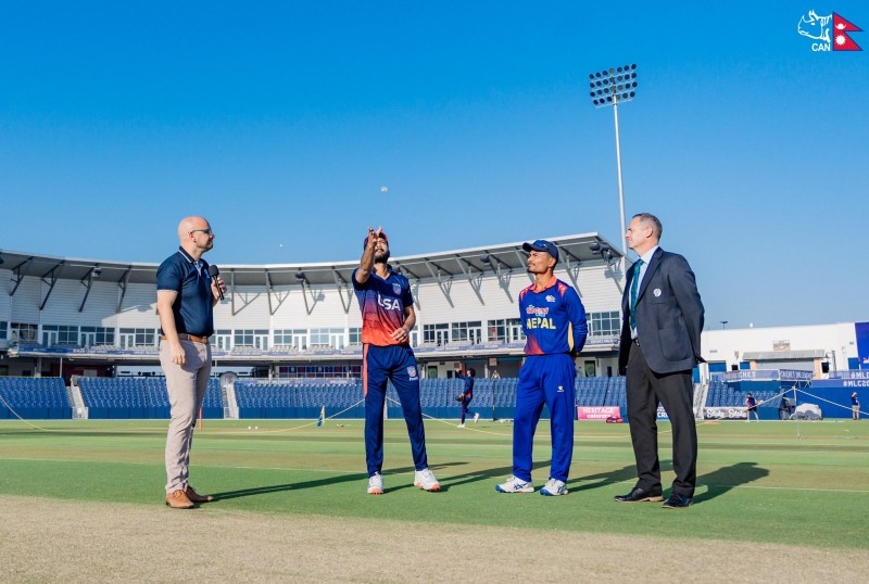 अमेरिकाले टस जित्यो, नेपालले पहिला ब्याटिंग गर्ने खबर एक्सप्रेस २०८१-०७-११ ०९:५४ मा प्रकाशित Total Shares: 132 काठमाडौं-आइसीसी विश्वकप लिग-२ अन्तर्गत अमेरिकाले टस जितेको छ ।अमेरिकाका कप्तान मोनांक पटेलले टस जितेर पहिला बलिङ गर्ने निर्णय गरेका छन् । योसँगै नेपालले पहिला ब्याटिंग गर्ने भएको छ ।त्रिकोणात्मक सिरिजको पहिलो खेलमा स्कटल्याण्डले अमेरिकालाई पराजित गरेको थियो भने नेपालले सिरिजको पहिलो खेल खेल्दै छ ।