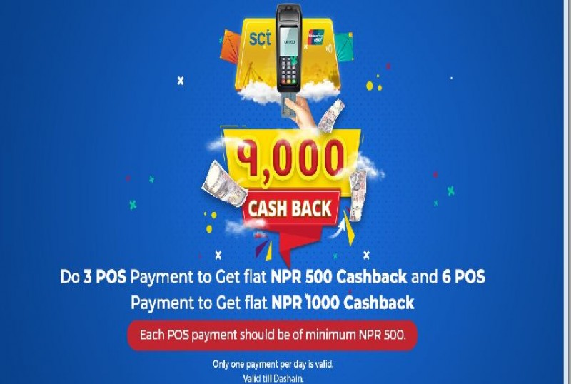 यस योजना पश्चात एससिटि कार्ड होल्डर ग्राहकलाई एससिटि कार्ड मार्फत गरिने ग्राहकको विश्वास बढाउन सकिने बैंकले जनाएको छ । असोज १ देखि दशैंभर चल्ने यो योजनामा कम्तिमा ३ वटा पस कारोबार गर्ने कार्ड होल्डरलाई ५ सय तथा कम्तिमा ६ वटा पस कारोबार गर्ने कार्ड प्रयोगकर्तालाई १ हजार रुपैया क्यासब्याक प्रदान गरिने छ । क्यासब्याक प्राप्त गर्न हरेक पटकको कारोबार भुक्तानी रकम कम्तीमा ५ सय रुपैयाको हुनुपर्नेछ जसमा दिनको एउटा कारोबारलाई मात्र गणना गरिने पनि विज्ञप्तिमा उल्लेख छ ।