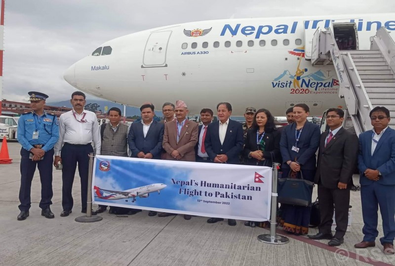 नेपाल एयरलाइन्सको उडान नं २१७१ जहाजले काठमाडौँ–कराँची उडान भरी साँझ कराँचीबाट काठमाडौँ फर्कने उडान तालिका रहेको छ । राहत सामग्री बोकेको जहाज केहीबेरअघि कराँची प्रस्थान गरेको विमानस्थल कार्यालयले जनाएको छ । मित्रराष्ट्रराष्ट्र पाकिस्तानसँग २० मार्च १९६० मा कूटनीतिक सम्बन्ध स्थापित भएदेखि नै दुईदेशबीच घनिष्ट सम्बन्ध रहँदै आएको छ । दुवै मुलुककाबीचमा सरकार तथा जनस्तरमा सहयोगात्मक सम्बन्ध विद्यमान हुनुका साथै प्राकृतिक प्रकोपका समयमा एकआपसमा सहयोग गर्ने परम्परा रहेको छ ।