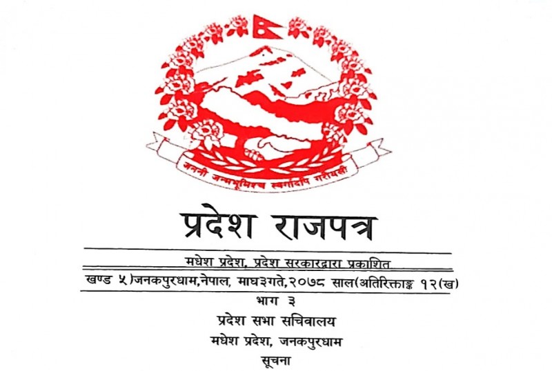 मधेस प्रदेशको राजपत्रमा ‘चुच्चे नक्सा’ गायब,नियोजित रूपमा प्रयोग नगरेको आशंका