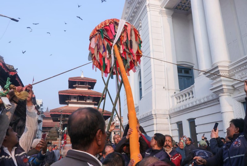बसन्तपुरको हनुमानढोकामा चीर ठड्याइएसँगै सुरु भयो होली