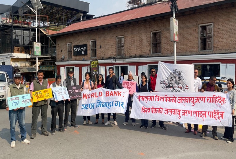 काठमाडौं-विश्व बैंकले दिइरहेको जलवायु ऋण र जलवायु परिवर्तनका अभ्यास गलत रहेको भन्दै अभियन्ताहरू सडकमा उत्रिएका छन्।