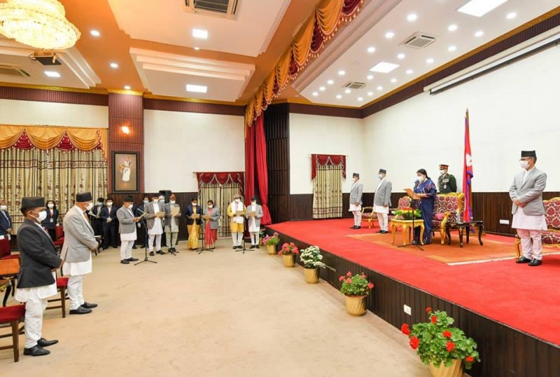जेठ ७ गते संसद विघटन गरिसकेपछि प्रधानमन्त्री केपी शर्मा ओलीले जेठ २१ गते एक जना उपप्रधानमन्त्री र १० जना मन्त्री हटाएर उपप्रधानमन्त्री, मन्त्री र राज्यमन्त्री गरी २० जना थप गरेका थिए ।